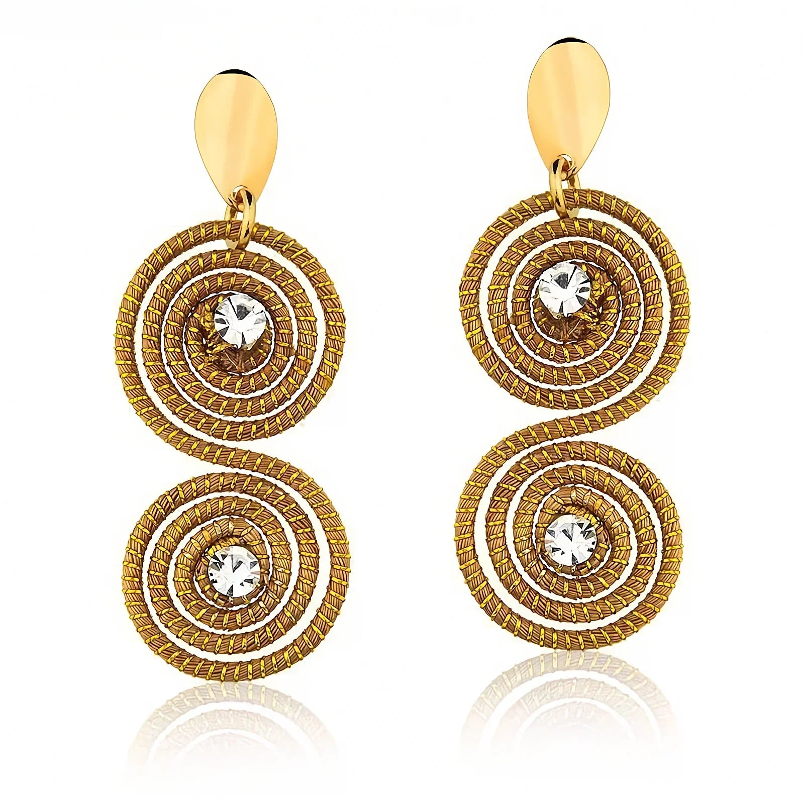 Golden Grass Swirls and Zirconia Earrings